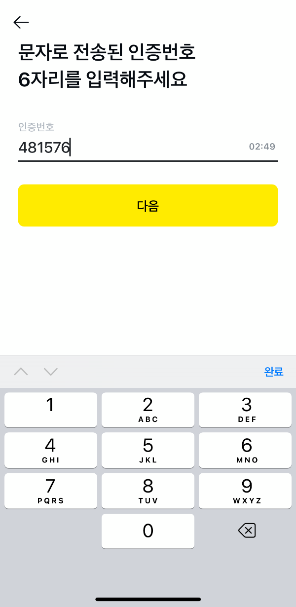 3. 문자 인증번호 입력