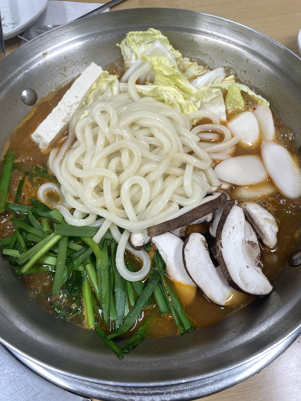 소곱창과 부추, 버섯, 떡, 배추, 두부 등 다양한 재료가 들어가 있습니다.