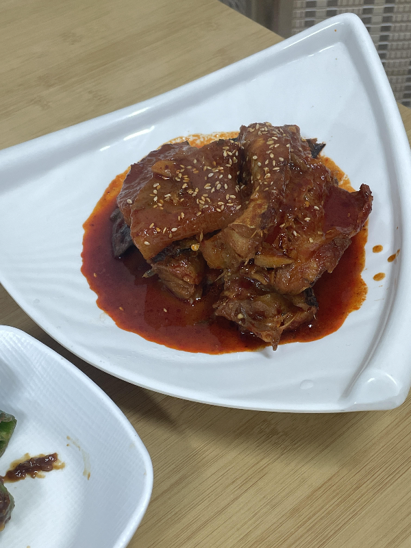 생선찜에 있는 무는 양념이 잘 배어들어 있어서 깊은 맛이 나서 좋았습니다.