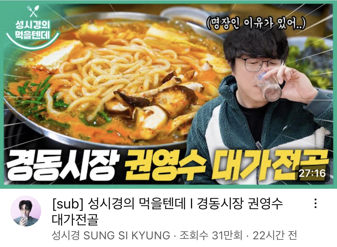 맛집에 진심인 성시경의 먹을텐데 유튜브 채널에 나온 경동시장 권영수 대가전골