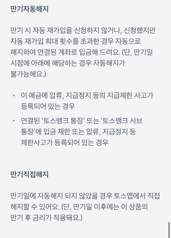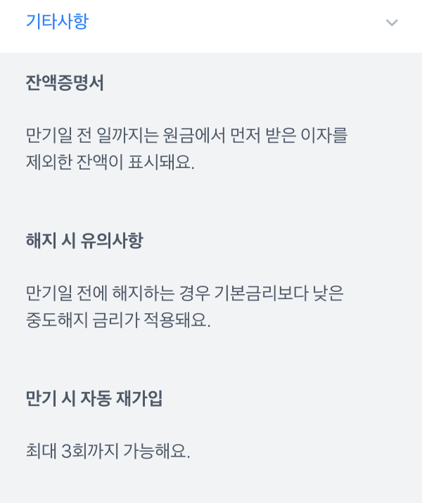 - 만기 시 자동 재가입은 최대 3회까지 가능합니다.