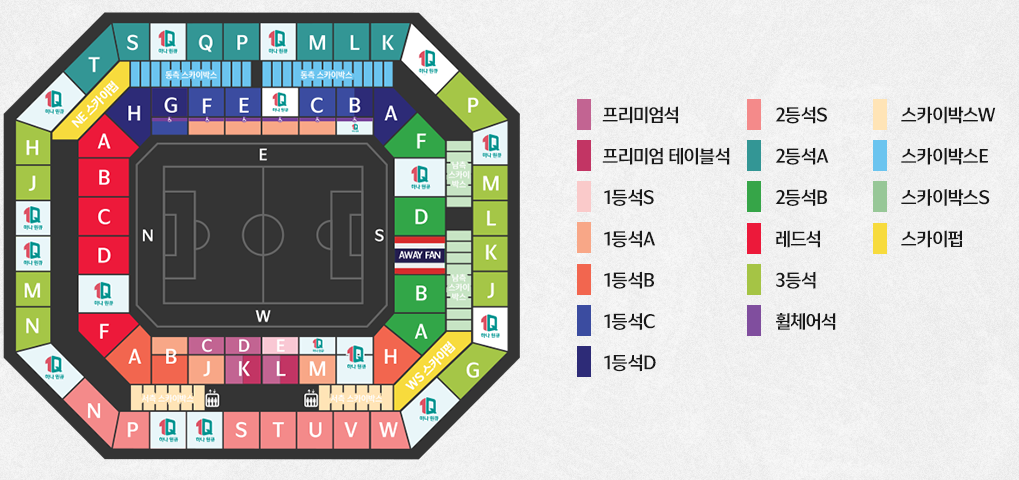 좌석은 프리미엄석, 1~3등석, 응원석(레드석), 휠체어석으로 구분됩니다.