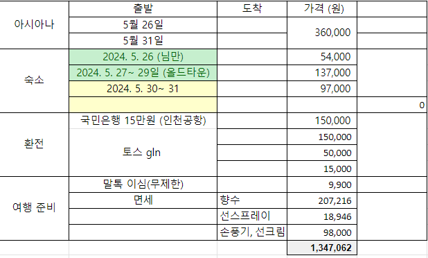 - 숙박 : 3박만 해도되지만, 새벽 비행기로 저는 1박을 더 추가하여 288,000원