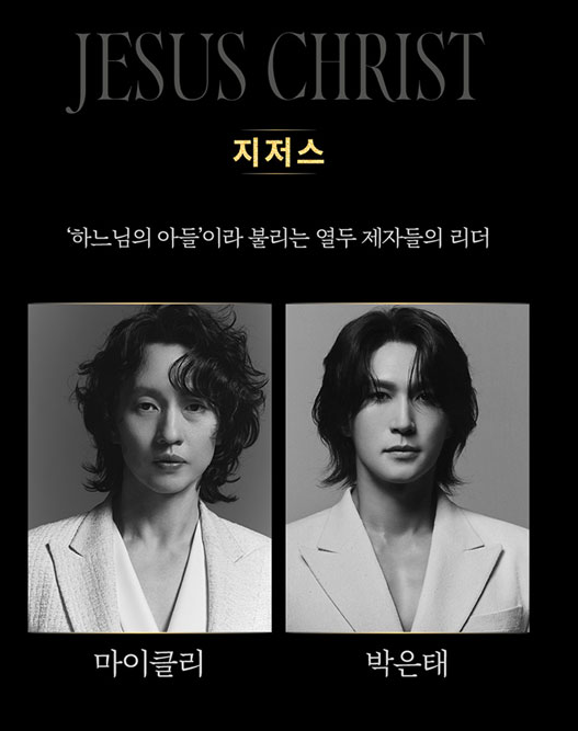 하느님의 아들이라 불리는 열두 제자들의 리더 지저스 역에는 마이클리, 박은태가 캐스팅 되었습니다.